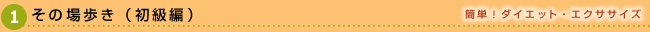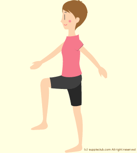 | これはテレビを見ているときコマーシャルタイムを利用して行うエクササイズです。一回の時間を無理に長くしなくても、合計で20〜25分毎日その場歩きを継続することにより持久力も上がり、脂肪の燃焼も期待できます。 |